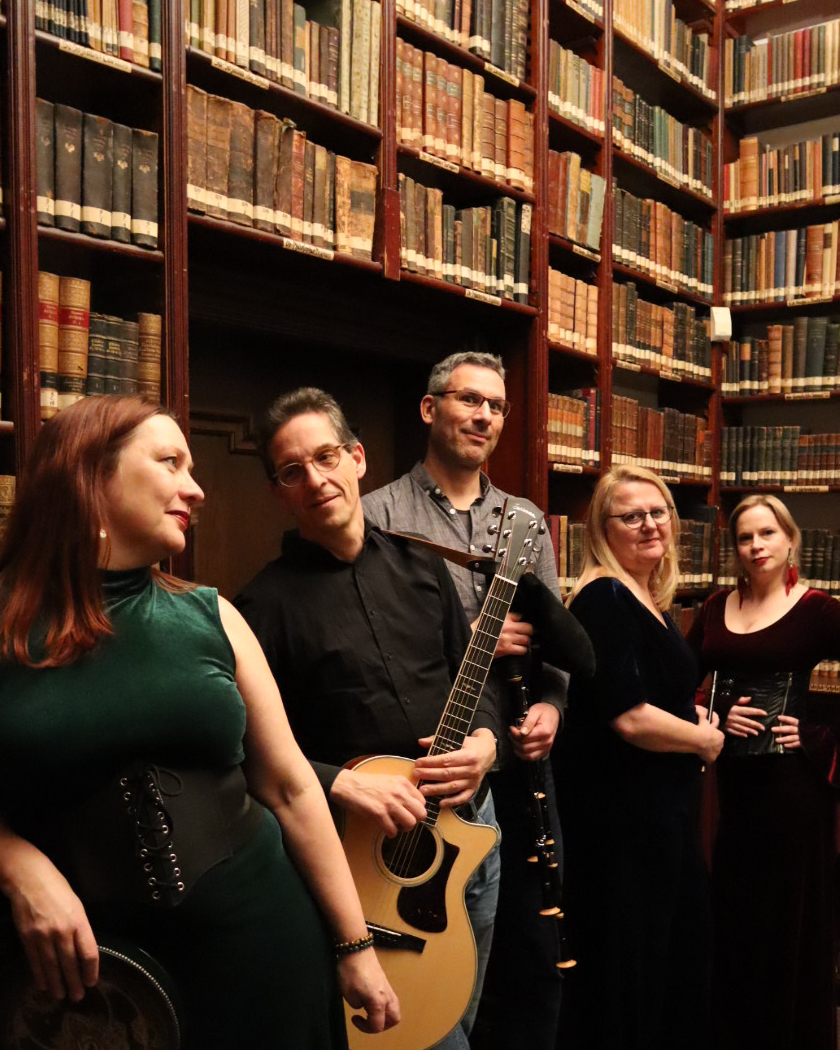 Mit abwechslungsreicher Instrumentierung und mehrstimmigem Gesang entführt die Band in eine Welt voller Mythen, Fantasie und wohliger Melancholie.len anderen Instrumenten."